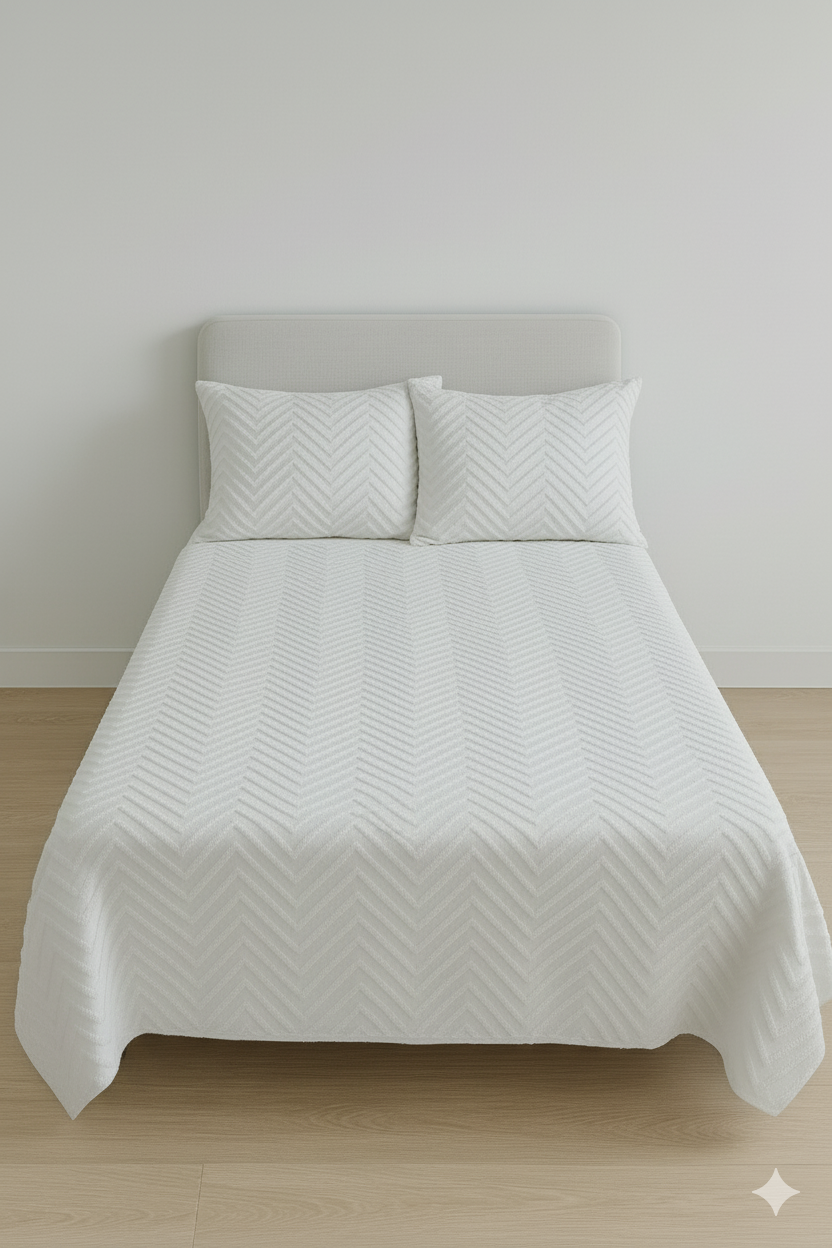 Pamuklu pike takımı, nefes alabilen yapısıyla konforlu uyku sağlar. Yumuşak dokusu ve dayanıklı yapısı sayesinde uzun ömürlü kullanım sunar. Modern tasarımlarıyla yatak odalarına şıklık katan bu takım, kolay temizlenebilir özellikte olup, her mevsime uygundur.