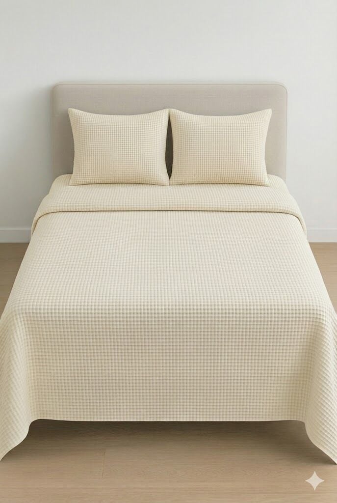 Püre %100 Pamuk Waffle Çift Kişilik Pike Takımı Krem