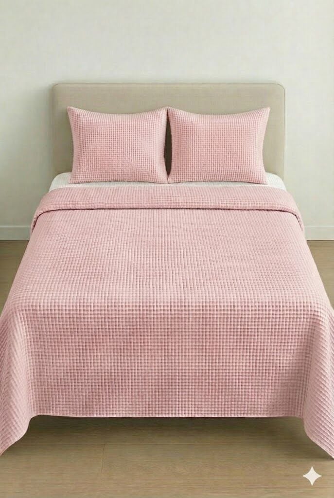 Püre %100 Pamuk Waffle Çift Kişilik Pike Takımı Pembe