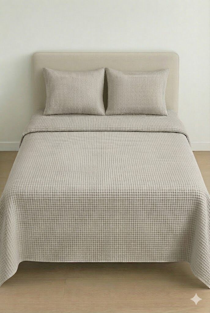 Püre %100 Pamuk Waffle Çift Kişilik Pike Takımı Vizon