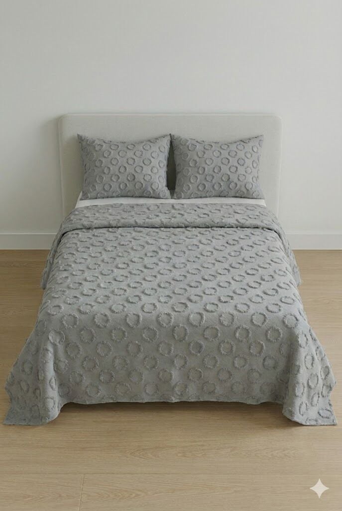 Pamuklu pike takımı, nefes alabilen yapısıyla konforlu uyku sağlar. Yumuşak dokusu ve dayanıklı yapısı sayesinde uzun ömürlü kullanım sunar. Modern tasarımlarıyla yatak odalarına şıklık katan bu takım, kolay temizlenebilir özellikte olup, her mevsime uygundur.