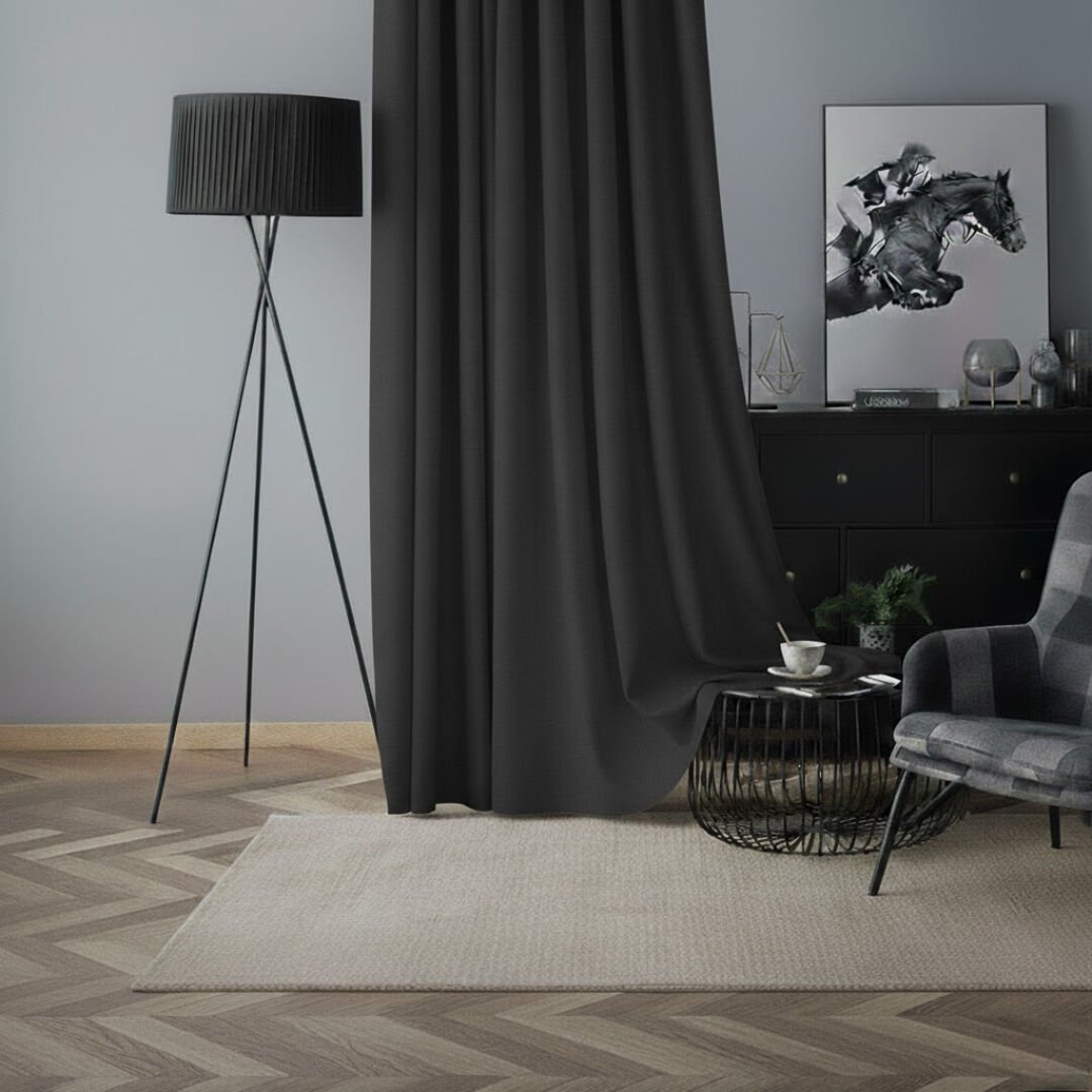 Soft Kadife Fon Perde 90 cm Sık Pile Koyu Antrasit