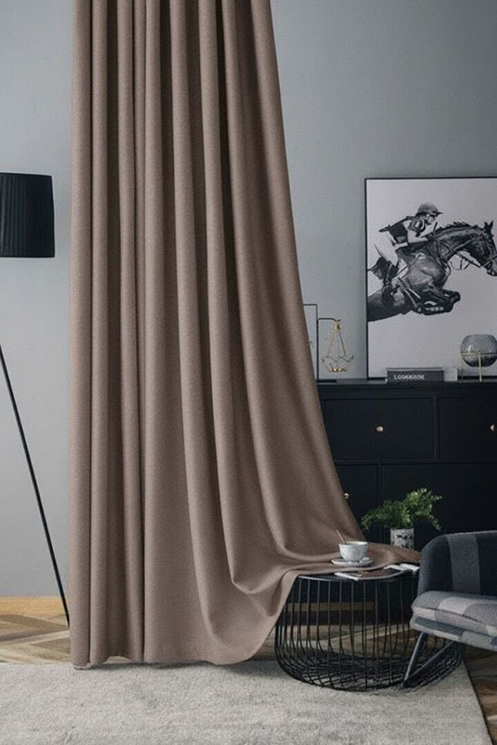 Soft Kadife Fon Perde 90 cm Sık Pile Koyu Sütlü Kahve